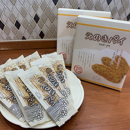 中野市の特産品えのきを使用した焼き菓子やギフトも取り揃えており、お土産におすすめです。