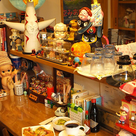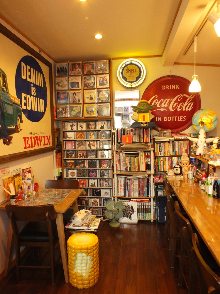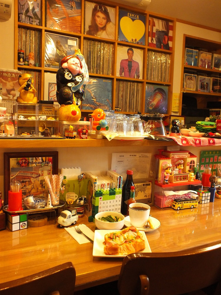 店内は広くはありませんが、ミュージアム(展示)スペースがあり、マスターが趣味で集めたレコードやCD、各種雑誌、お菓子のおまけ、ホーロー看板、中野市の土びな、他面白くて珍しい物が多数展示してあります。タイムスリップ感満載、ちょっぴり懐かしい昭和レトロな感じです。なお、店内にはLPレコード(約2000枚)シングル・レコード(約5000枚)があり、曲目リストを作ってあります。CDも数千枚ありますので、お気に入りの1曲を探してみてはいかが。レコードは針のないレコードプレイヤー(レーザーターン・テーブル)で、おかけいたします。ハッピースマイル(幸せな笑顔)とともに、皆様のご来店を心よりお待ちしております。