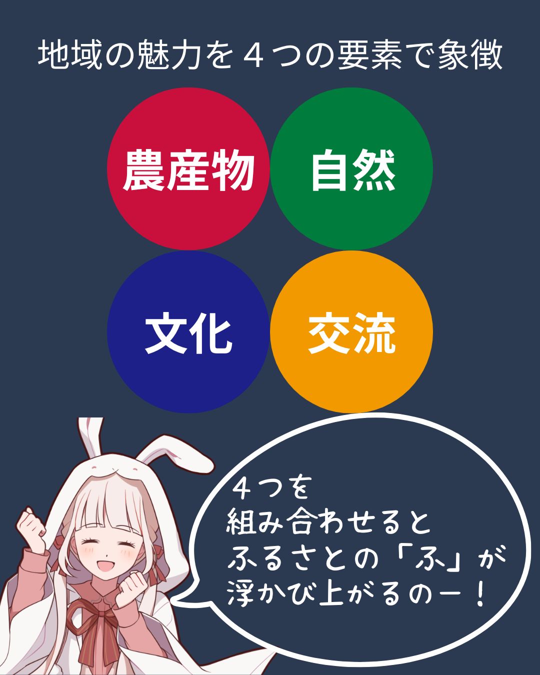 これら4つの要素を組み合わせることで、「ふるさと」の「ふ」の文字が浮かび上がるデザインとなっています。