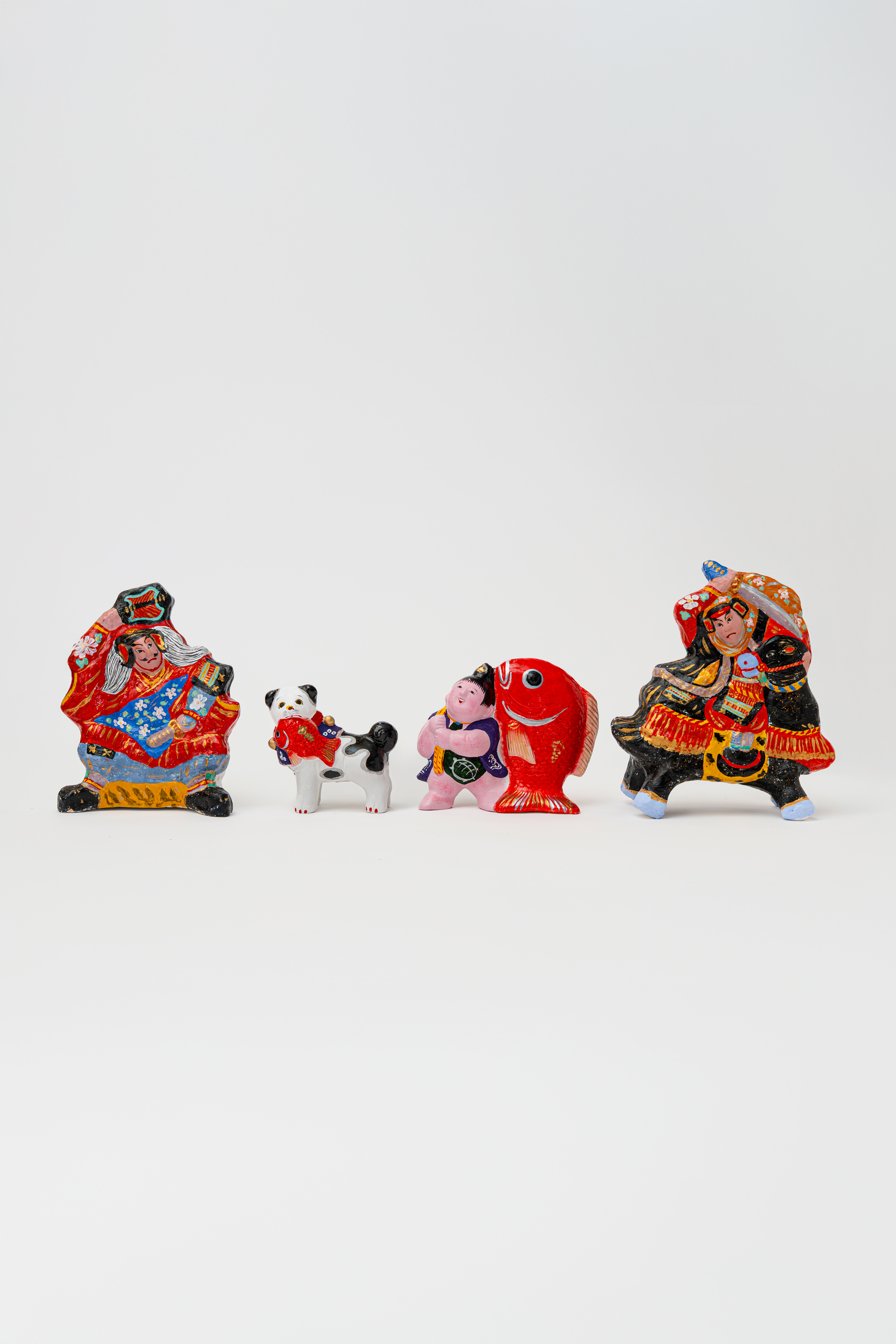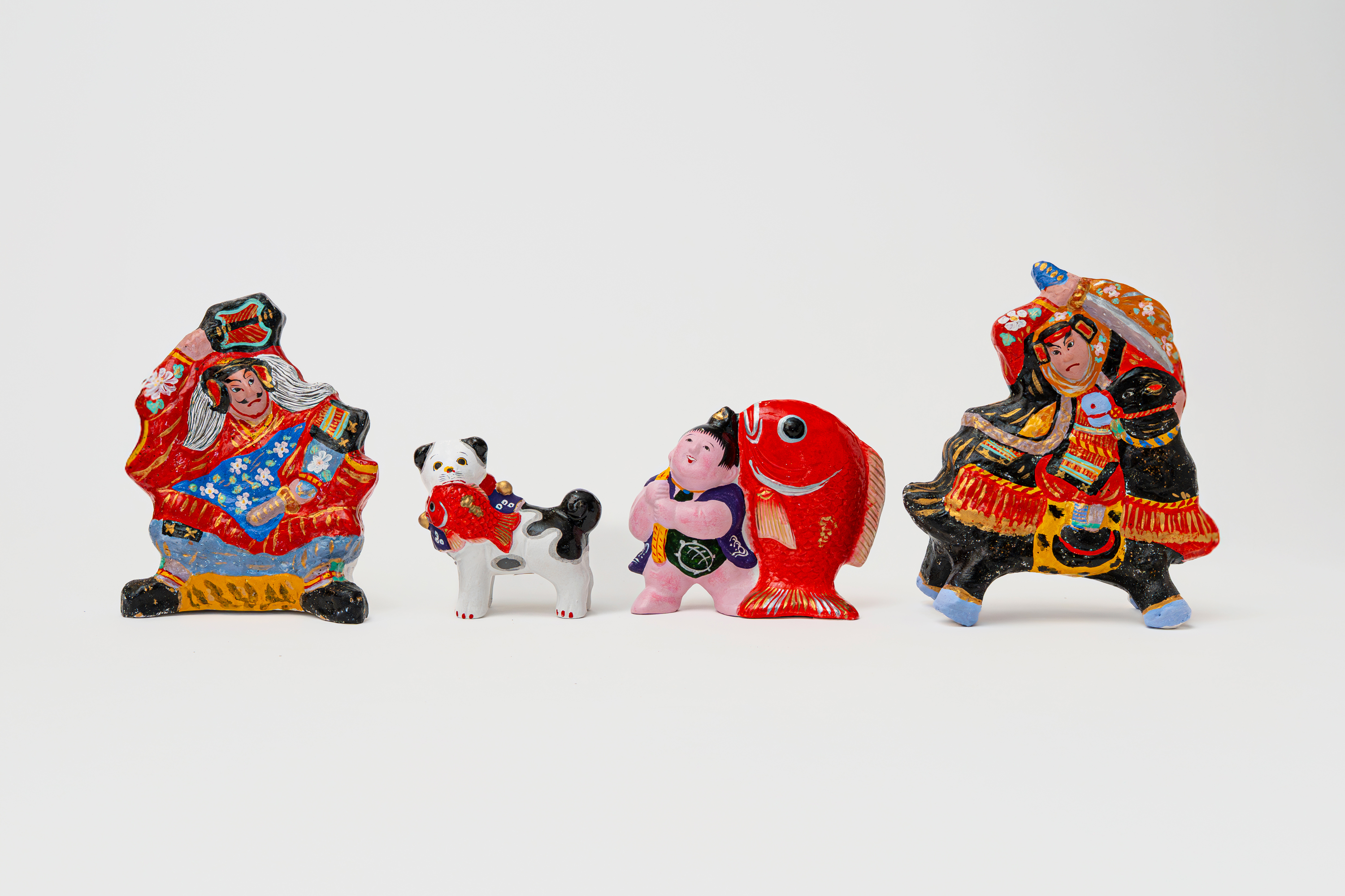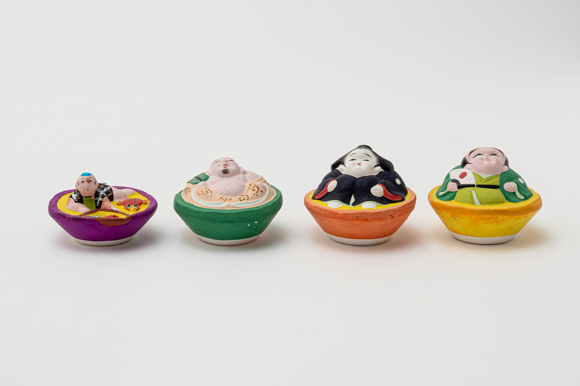 全国各地で制作されている土人形の中で、伏見人形の系統をひかないものはないと言われており、土人形の元祖とされています。土器などを作っていた「土師部(はじべ)」の遊び心で人形を作り始めたのが始まりで、少なくとも江戸時代初期以前から制作されていたものといわれています。江戸時代後期の最盛期には、50戸余りの窯元で制作されていましたが、現在は、1軒のみとなっています。型の素材は、縁起物から動物に至るまで多岐にわたり、2000種ほど制作されています。