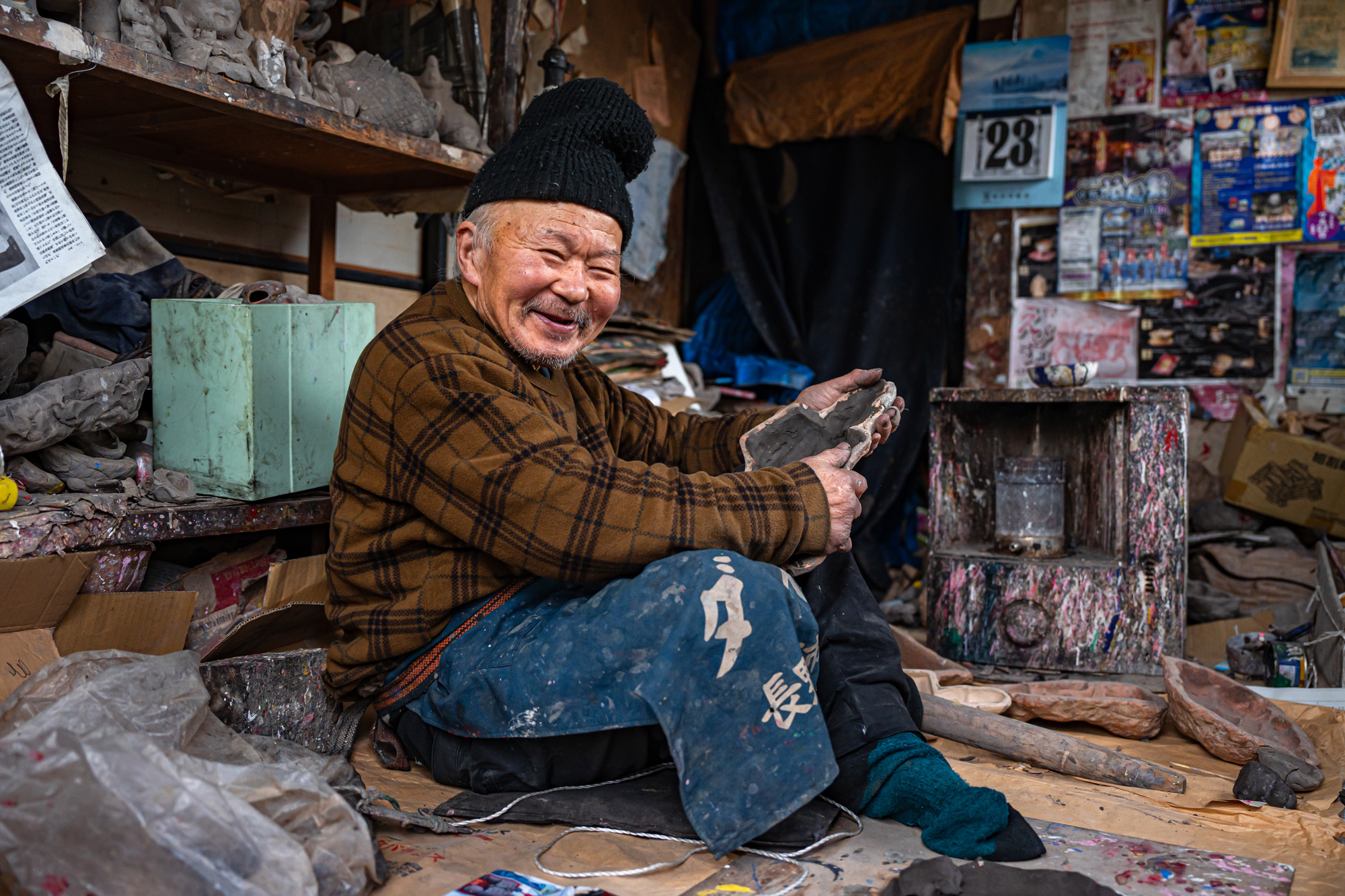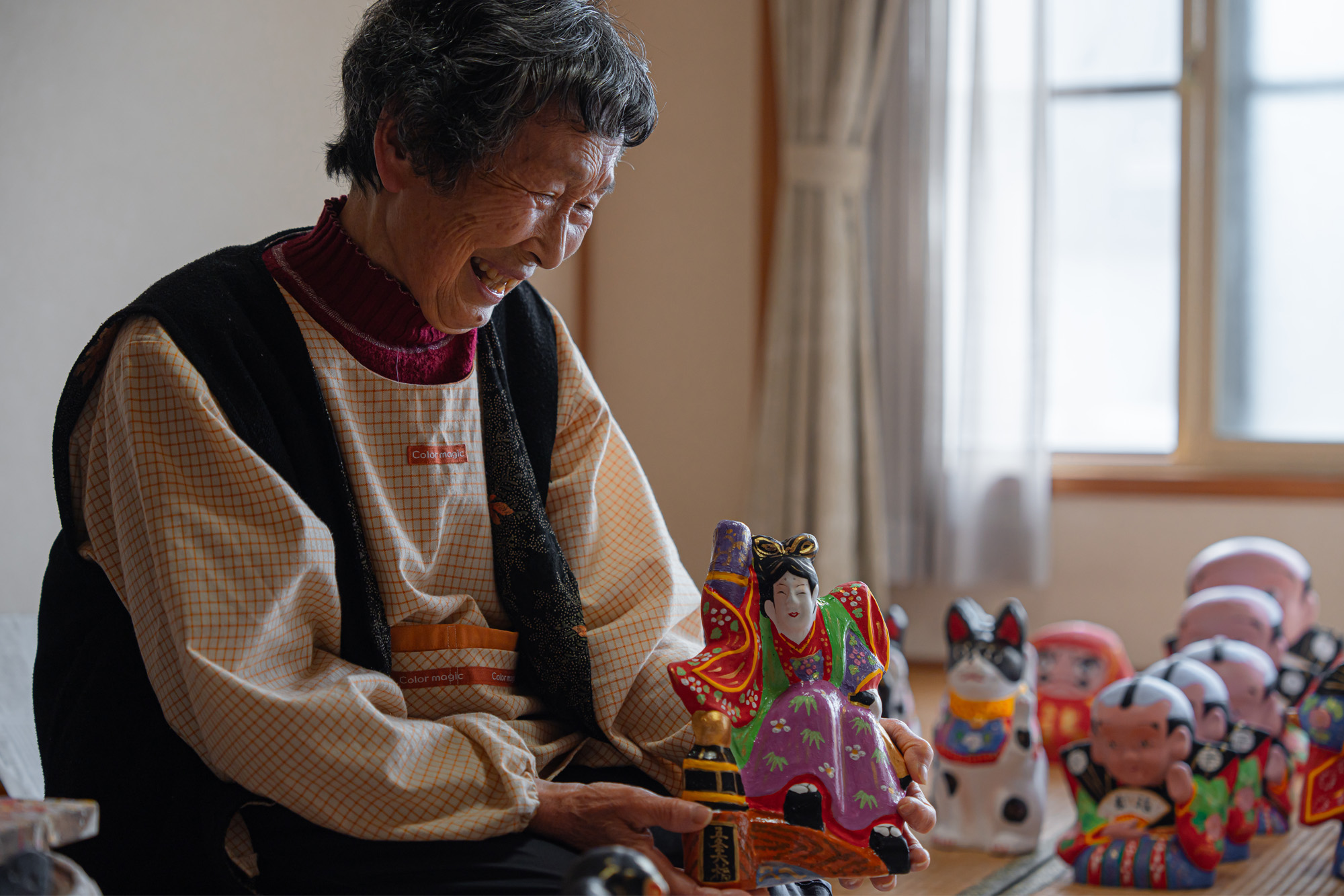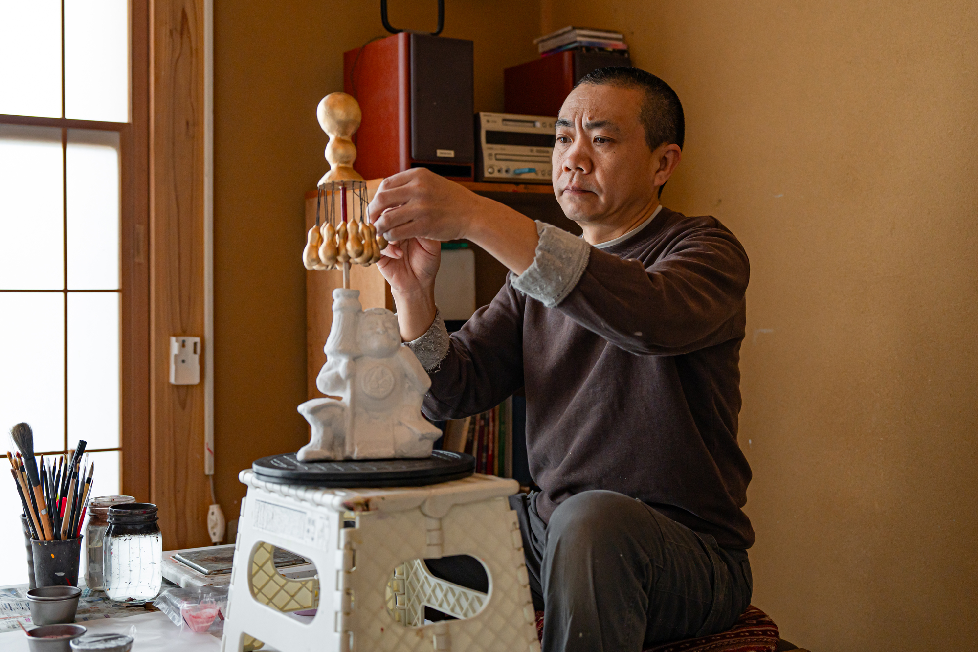 全国各地で制作されている土人形の中で、伏見人形の系統をひかないものはないと言われており、土人形の元祖とされています。土器などを作っていた「土師部(はじべ)」の遊び心で人形を作り始めたのが始まりで、少なくとも江戸時代初期以前から制作されていたものといわれています。江戸時代後期の最盛期には、50戸余りの窯元で制作されていましたが、現在は、1軒のみとなっています。型の素材は、縁起物から動物に至るまで多岐にわたり、2000種ほど制作されています。